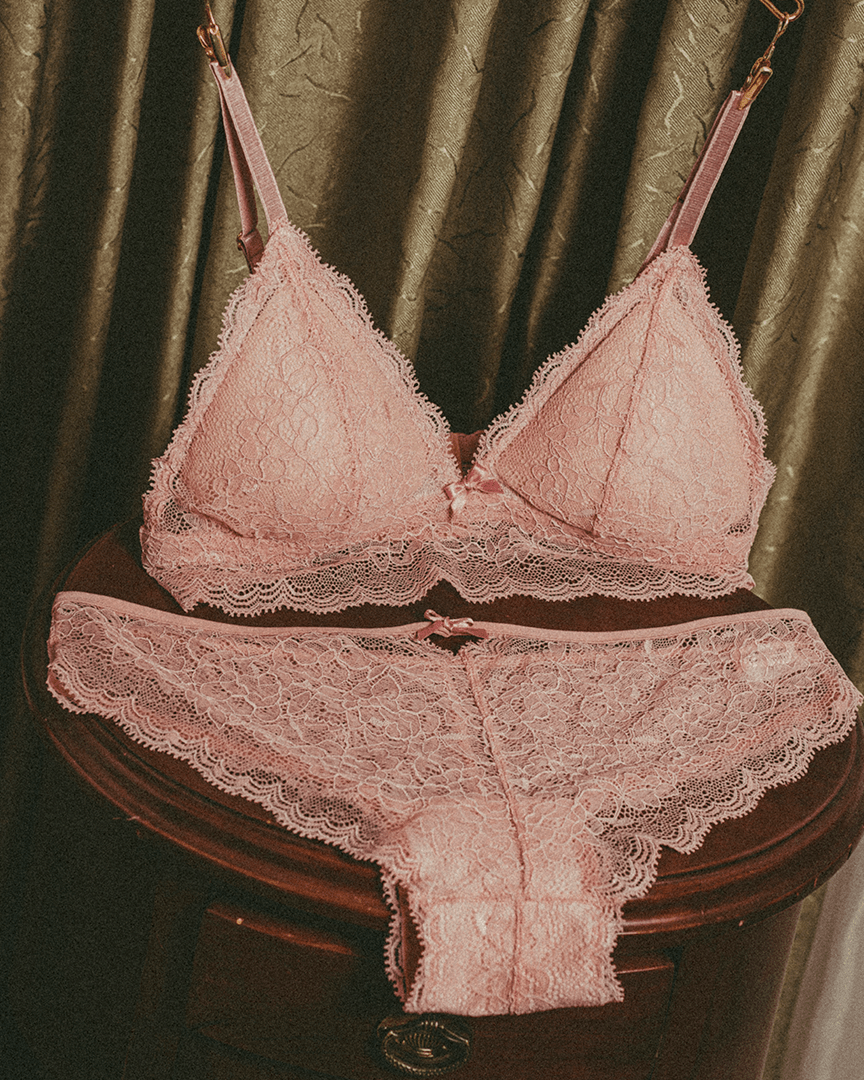 Un set diseñado para la comodidad del día a día, todo el set está hecho en encaje. El bralette tiene una copa triangular clásica con copa interna removible, base en encaje, sin varillas y el panty es semicachetero que no se marca.
